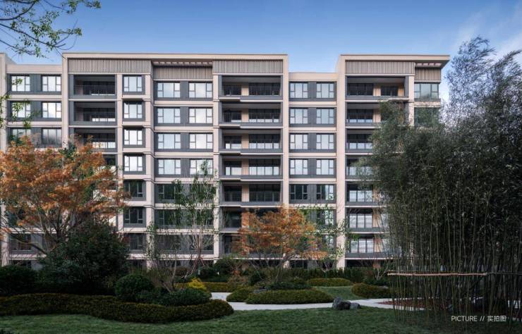项目建筑立面用材由真石漆升级为水包砂。水包砂立面色泽饱满持久,宛如自然石材,并且具备出色的耐候性和抗污性,使建筑历久弥新。突破成本限制,攻克工艺难点,保障施工进度,项目在成本、工程、设计等各部门的通力合作下,成功实现了立面品质升级。