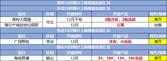 从分区情况来看,西海岸这个推盘大户仍是冲在最前面,12盘入市8盘为首次开盘;城阳则有10盘推量9盘为老盘加推,其中不少实力盘冲量年底;即墨将有6盘准备首开,全部是拿得出手的王牌项目,值得关注;胶州年底也将有4盘上新,产品全部为高层和小高。再来看主城部分,9-11月主城推出大量新盘,成交情况有好有坏,年底清库存成为主题,市北将有2盘推量,接档天汇国风住宅有望年底入市;李沧和崂山将有2个新盘入市,麦岛最后地块有望推出,高端改善购房者可多多关注。2019年,青岛楼市“买方市场”优势凸显,年底又将有一波“低价刺激、优惠加持”来袭,不失为购房者出手的时机,年末成交是否能翘尾,这份“期中考”答卷是否能令人满意,值得期待。