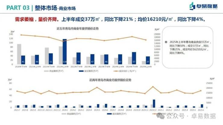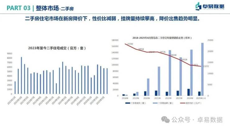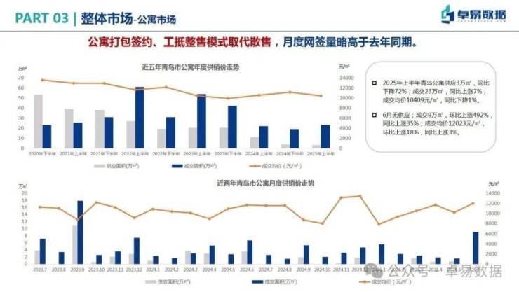 2025年青岛楼市上半年三、四月份进入活跃期,在五六月份热点板块、热点项目出现翘尾,由于6月的“努力”,整体成交量相比去年是增长的,实际层面二手房比新房活跃。