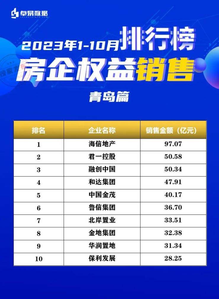 本榜单是根据卓易数据的独立研究,将青岛所有可售项目按照工商注册股权逐一进行权益拆分,剔除重复并表、重复计算的统计方法,展现一个客观的房企商品房销售权益“战绩”,更能清楚一家房企的实际业绩,更好的用于课题研究和监测。