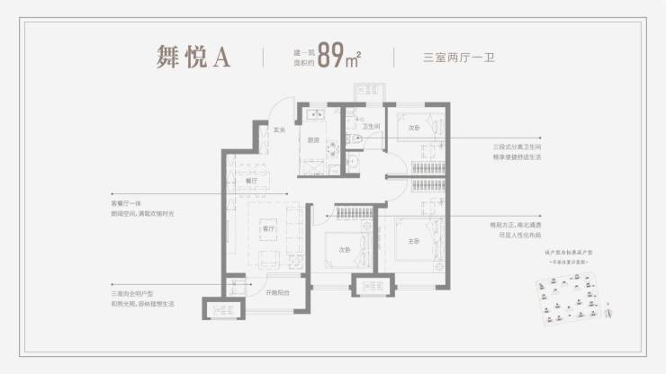 89㎡紧凑三居,打破小户型局限,全明设计让采光最大化,U型厨房节省操作动线,低总价门槛为首次置业减负。