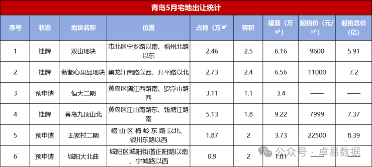 4月16日,青岛发布土拍市场实行预申请,在土地出让前公开发布拟出让地块信息,允许用地意向单位提出预申请并承诺愿意支付的土地价格。