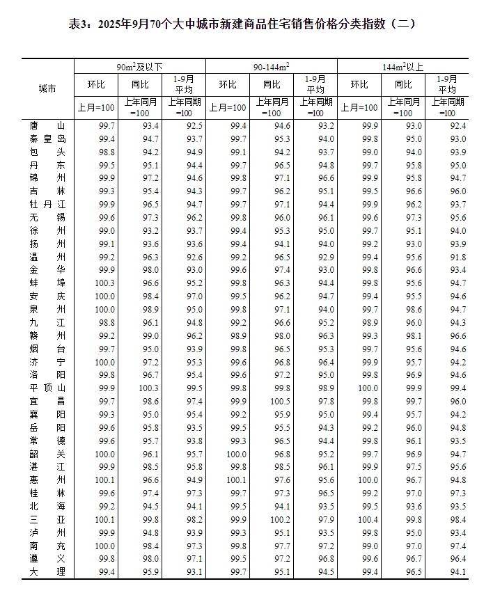 2025年9月份,70个大中城市中,各线城市商品住宅销售价格环比下降,同比降幅继续呈收窄态势。
