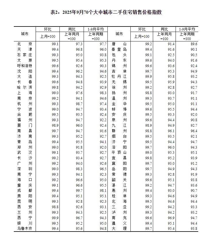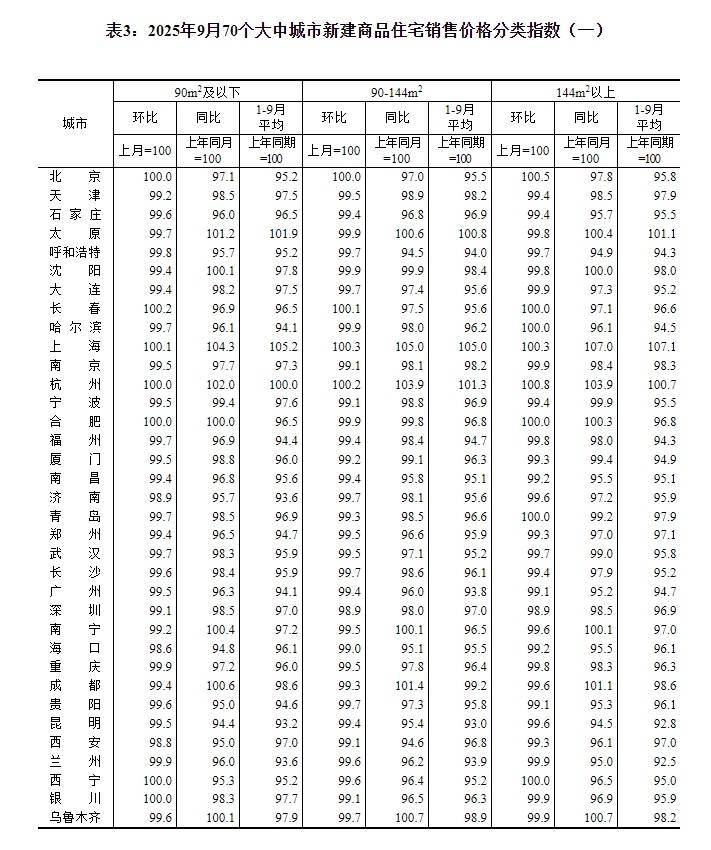 国家统计局城市司首席统计师王中华解读2025年9月份商品住宅销售价格变动情况统计数据。