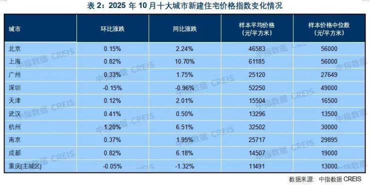 不仅如此,据中指研究院《中国房地产指数系统百城价格指数报告》,十大城市中,有8个城市10月份新房价格同环比均上涨。