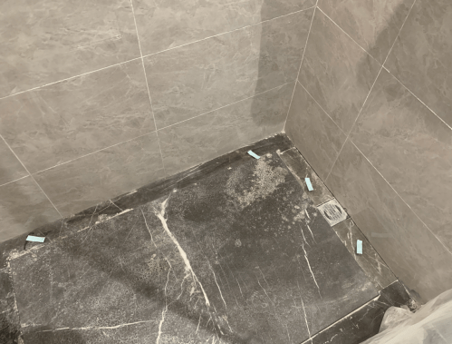 在检查完平整度和方正度之后,薛工用空鼓锤仔细敲击墙面检查空鼓。记者发现,查验空鼓的方式就是通过用空鼓锤敲击墙面发出的声音,来判断出墙面是否存在空鼓的现象,这项工作考验的是验房师的经验和耐心。通过认真检查,薛工发现客卫生间墙面砖空鼓 3处、地面砖空鼓一处,主卫生间淋浴区内地面砖空鼓4处,对于这些空鼓,薛工都一一标注。