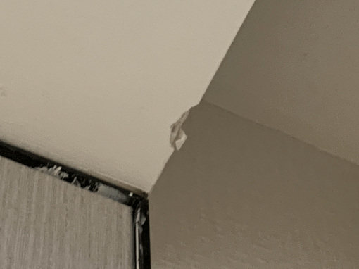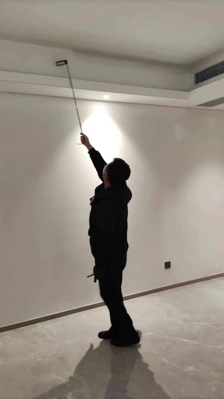 接着薛老师又对天花板进行了细致的勘验,发现室内天花污染多处、室内墙面与天花阴角收口未完成、 餐厅天花开裂等一系列问题,其中开裂现象已经在修复当中。“我也能感觉有些地方 不对劲,但就说不出来。有了如此专业的检测,我们心里也有底了。”李先生说。