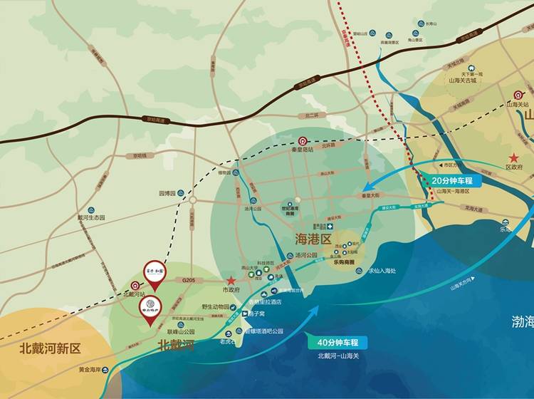 富力金禧项目由中国十大房企,千亿级地产品牌 — 广州富力地产以中国建筑形制打造的纯电梯洋房住区。项目承山海关千年古城文化,择址人居贵脉,背山望水,享14公里海岸线、原生河景资源及私属4公顷主题公园,项目周边配套完善,5公里范围内涵盖银行、星级酒店、医院、学校、商超、农贸市场等生活配套。路网畅通、交通便捷,具有可度假、可生活的投资置业属性。