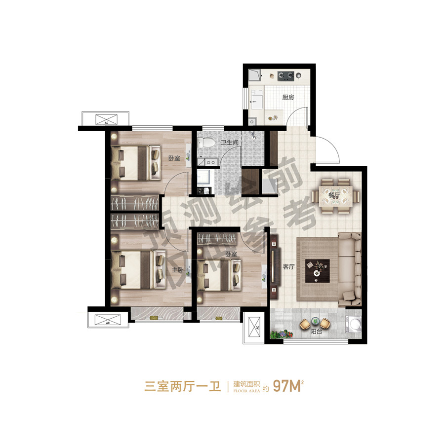 在售 南北通透 户型方正 客厅朝南 主卧朝南 餐客分离 干湿分离 飘窗