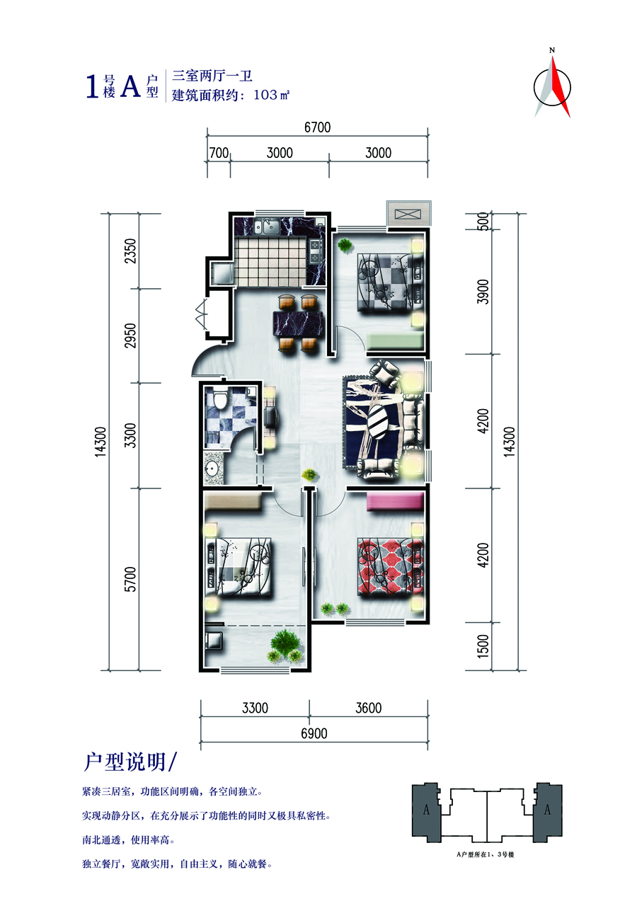 项目位于秦皇岛市开发区和平大街中段太行山路与赣江道交叉口,项目总占地近1万平米,总建筑面积21866平米,项目由3栋总高10层小高层及1栋商业楼组成。