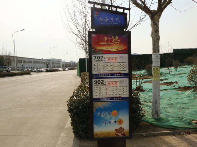 乘坐707路、902路公交车在渤海东路站下车,路北。