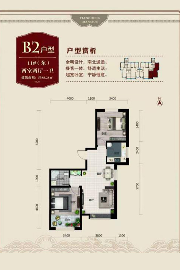 在售 南北通透 户型方正 全明格局 客厅朝南 主卧朝南 餐客分离 干湿分离