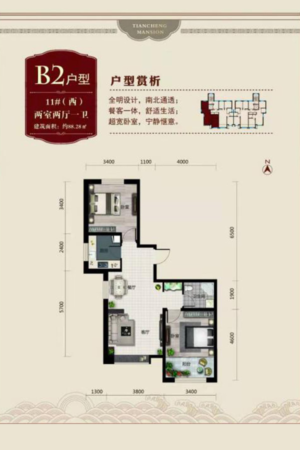 在售 南北通透 户型方正 全明格局 客厅朝南 主卧朝南 主卧带卫 卧室带阳台 厨卫不对门