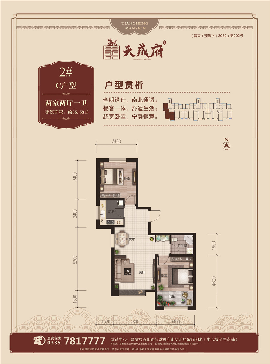 在售 南北通透 户型方正 全明格局 客厅朝南 主卧朝南 餐客分离 主卧带卫 干湿分离