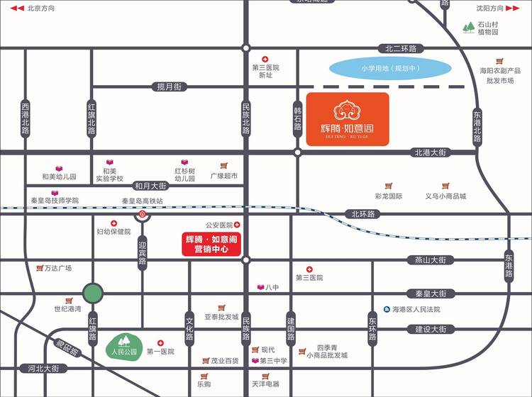 辉腾·如意阁位于秦皇岛韩石路以东,揽月街以南,北港大街以北,属于海港区重点发展的北部生态居住区域。全新北部新城核心地段不可复制,发展潜力巨大。