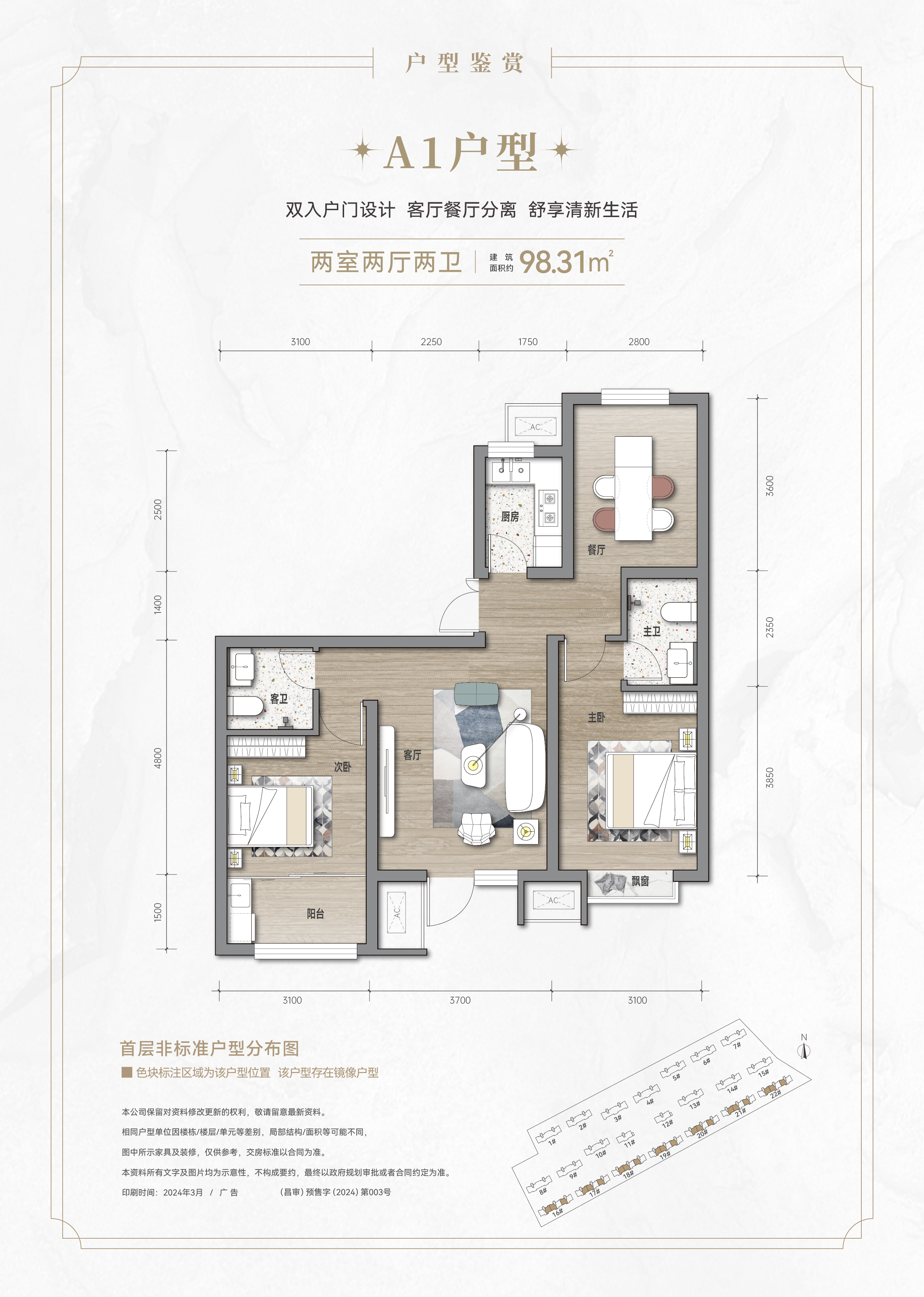 待售 南北通透 全明格局 客厅朝南 主卧朝南 餐客分离 主卧带卫 干湿分离 卧室带阳台 飘窗 厨卫不对门