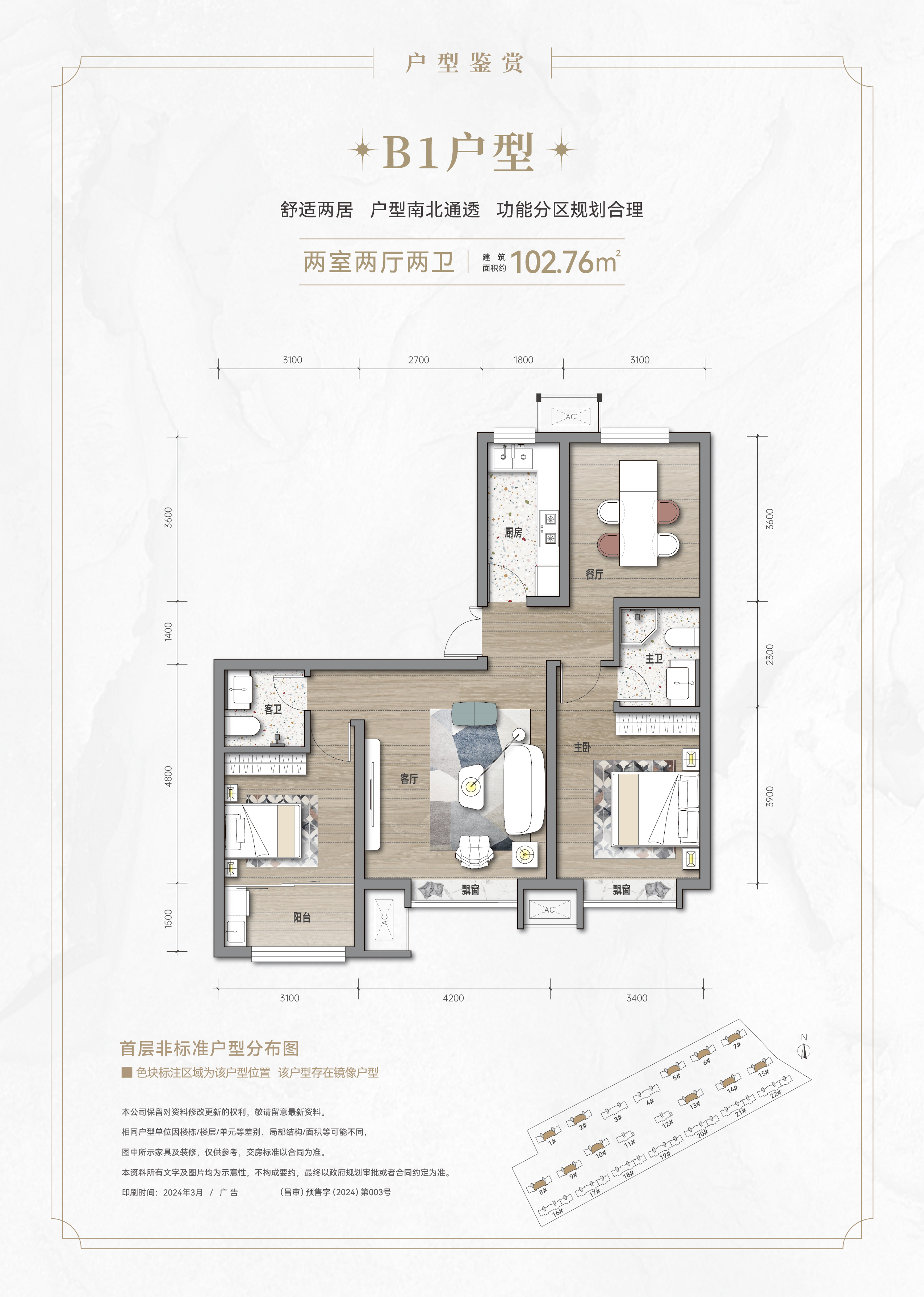 待售 南北通透 户型方正 全明格局 客厅朝南 主卧朝南 主卧带卫 干湿分离 飘窗 厨卫不对门