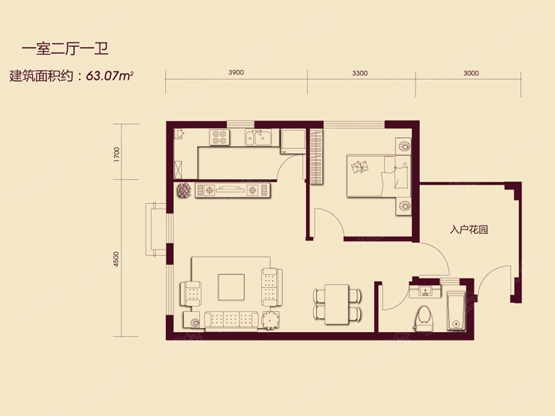 63万/套 建面63.07m²