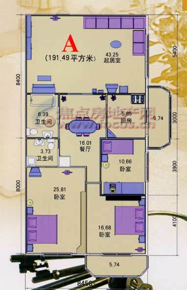 3室2厅2卫-鸿祥大厦三室两厅两卫A