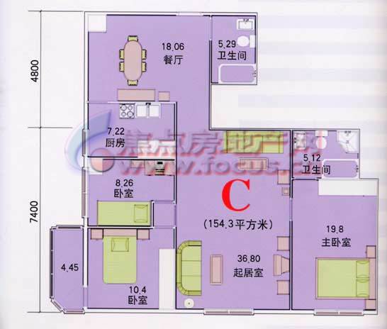 3室2厅2卫-鸿祥大厦三室两厅两卫C