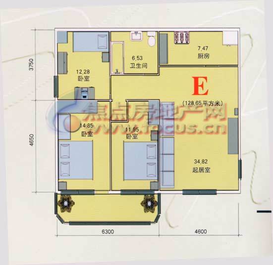 3室2厅1卫-鸿祥大厦三室两厅一卫E