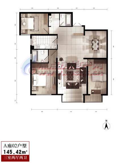 3室2厅2卫-晟基·香格里A座02三室两厅两卫145.42平米