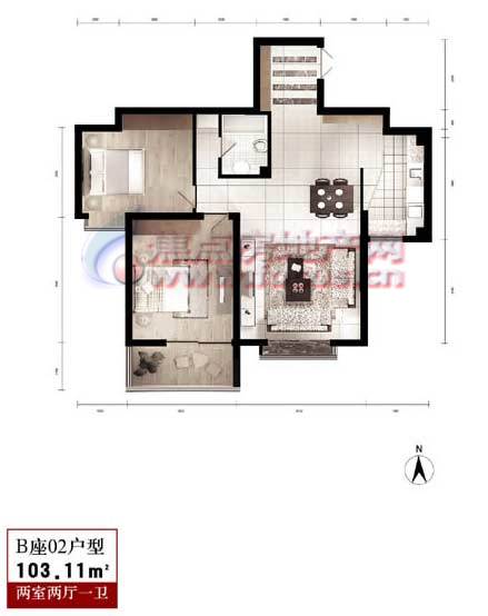 2室2厅1卫-晟基·香格里B座02两室两厅一卫103.11平米