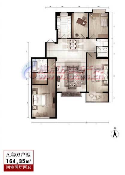 4室2厅2卫-晟基·香格里A座03四室两厅两卫164.35平米
