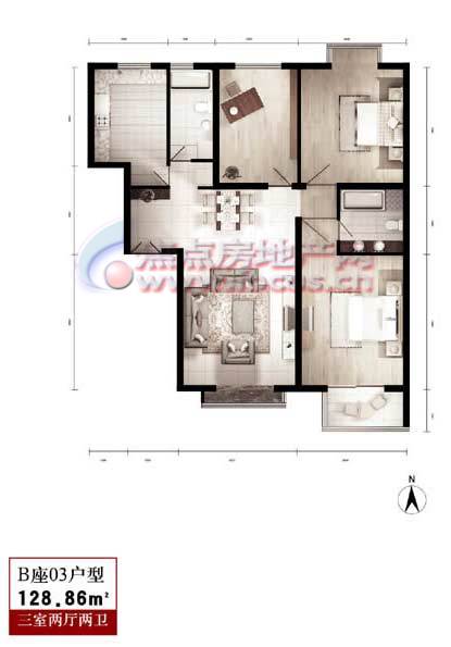 3室2厅2卫-晟基·香格里B座03三室两厅两卫128.86平米
