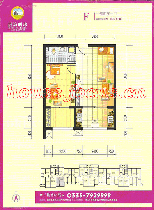 1室2厅1卫-渤海明珠F一室两厅一卫68.5