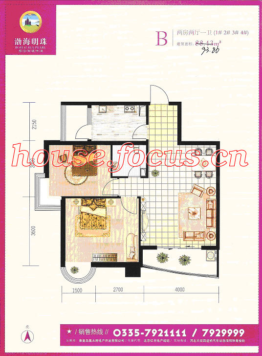 2室2厅1卫-渤海明珠B两室两厅一卫93.86