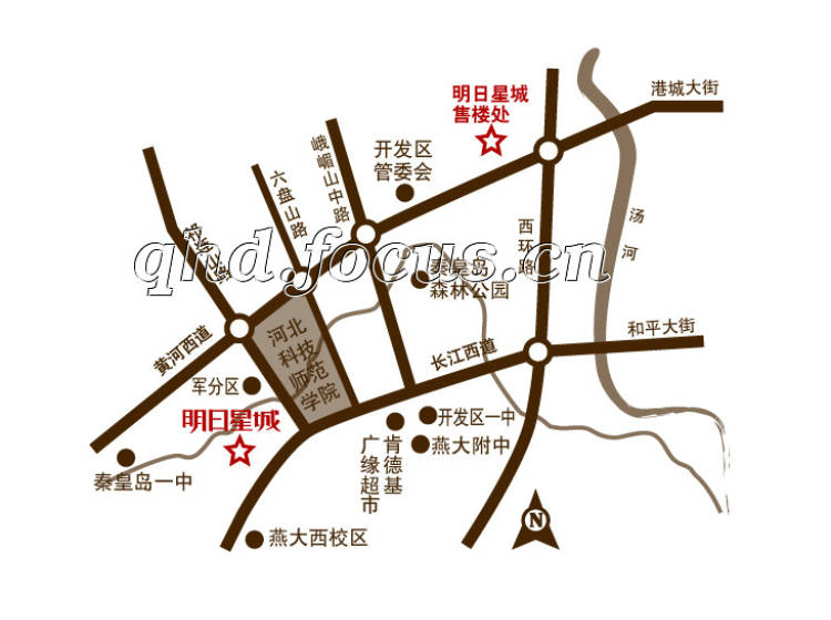 明日星城位于美丽的海滨城市秦皇岛内经济技术开发区,长江道与祁连山路交汇处西向,紧邻小汤河,坐拥秦皇岛市一中、燕山大学、河北科技师范学院等教育资源,生活配套完善,交通便捷。