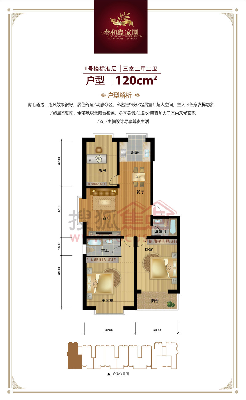 3室2厅2卫-泰和鑫家园1号楼标准层三室两厅一卫