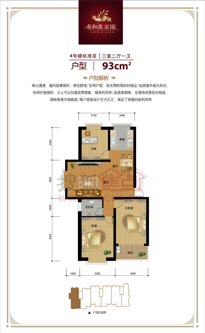 3室2厅1卫-泰和鑫家园 4号楼标准层三室两厅一卫