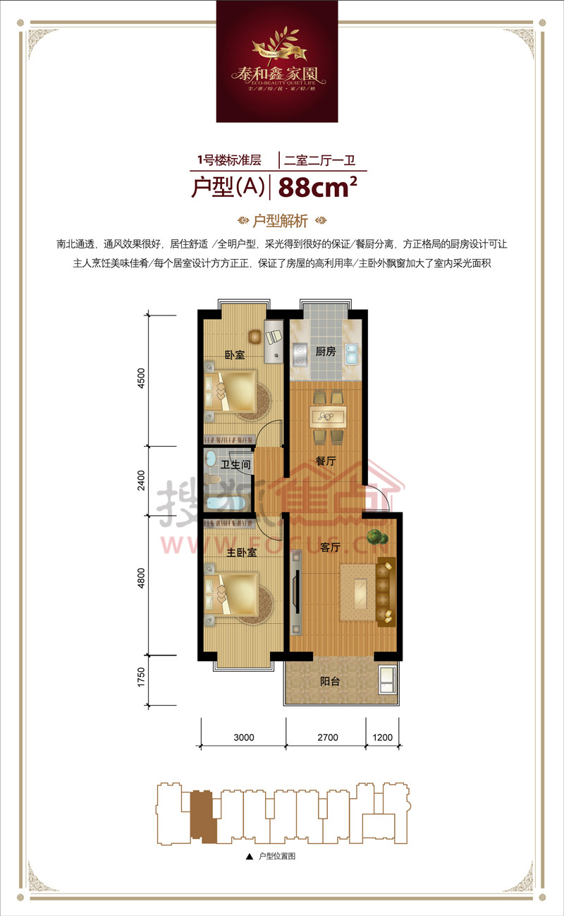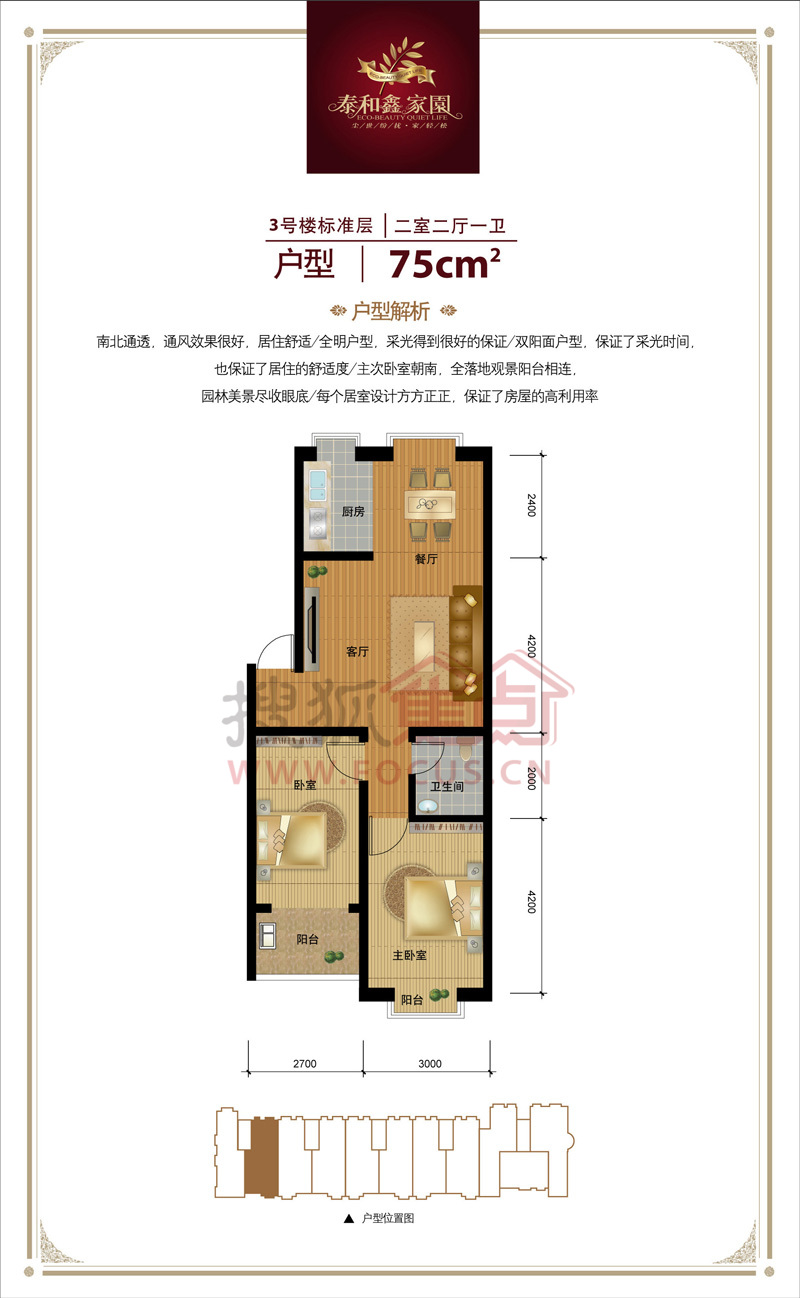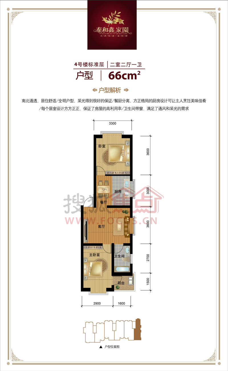 2室2厅1卫-泰和鑫家园 3号楼标准层两室两厅一卫