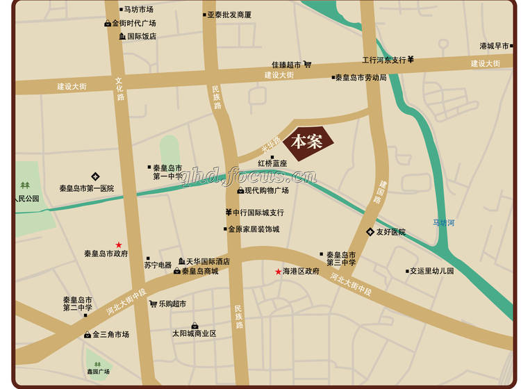 海港 现代购物广场北侧,民族路与光华路交汇处