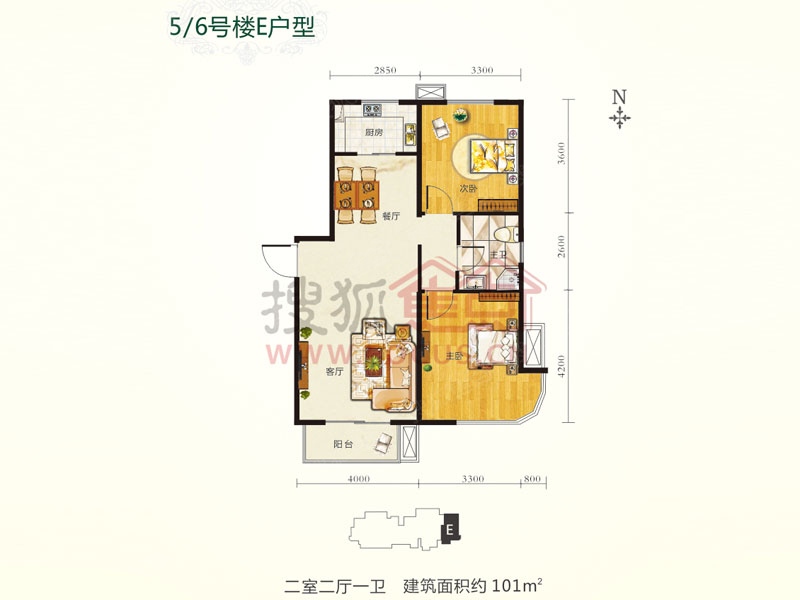 2室1厅1卫-5-6#楼E