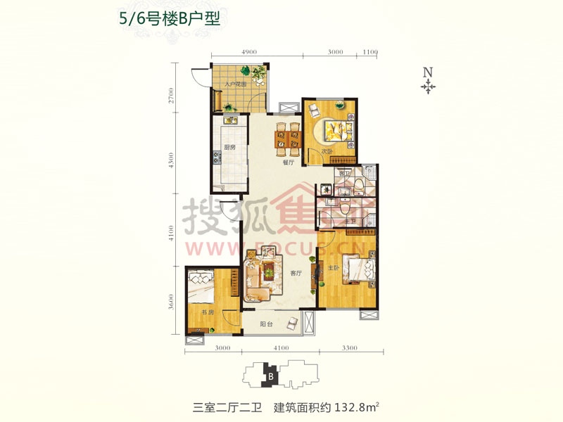 3室2厅1卫-5-6#楼B