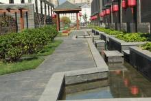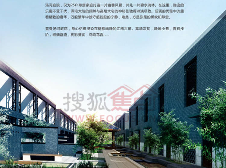 汤河庭院位于秦皇岛市海港区先锋路9路公交车终点站西行(汤河自来水厂北面),小区整体嵌入汤河公园。 汤河庭院共25栋现代中式的联排庭院别墅,每一栋别墅均设计有南北双庭院,地上3层,地下一层,户内均配置私家电梯。汤河庭院在品质设计上,每一栋别墅均配置1.5米宽的紫铜入户门,全屋配装高档铝包木双层中空玻璃窗。每一层均设计有观景露台,更有超大面积和挑空空间赠送,每一户均配置超大地下停车位一处。
