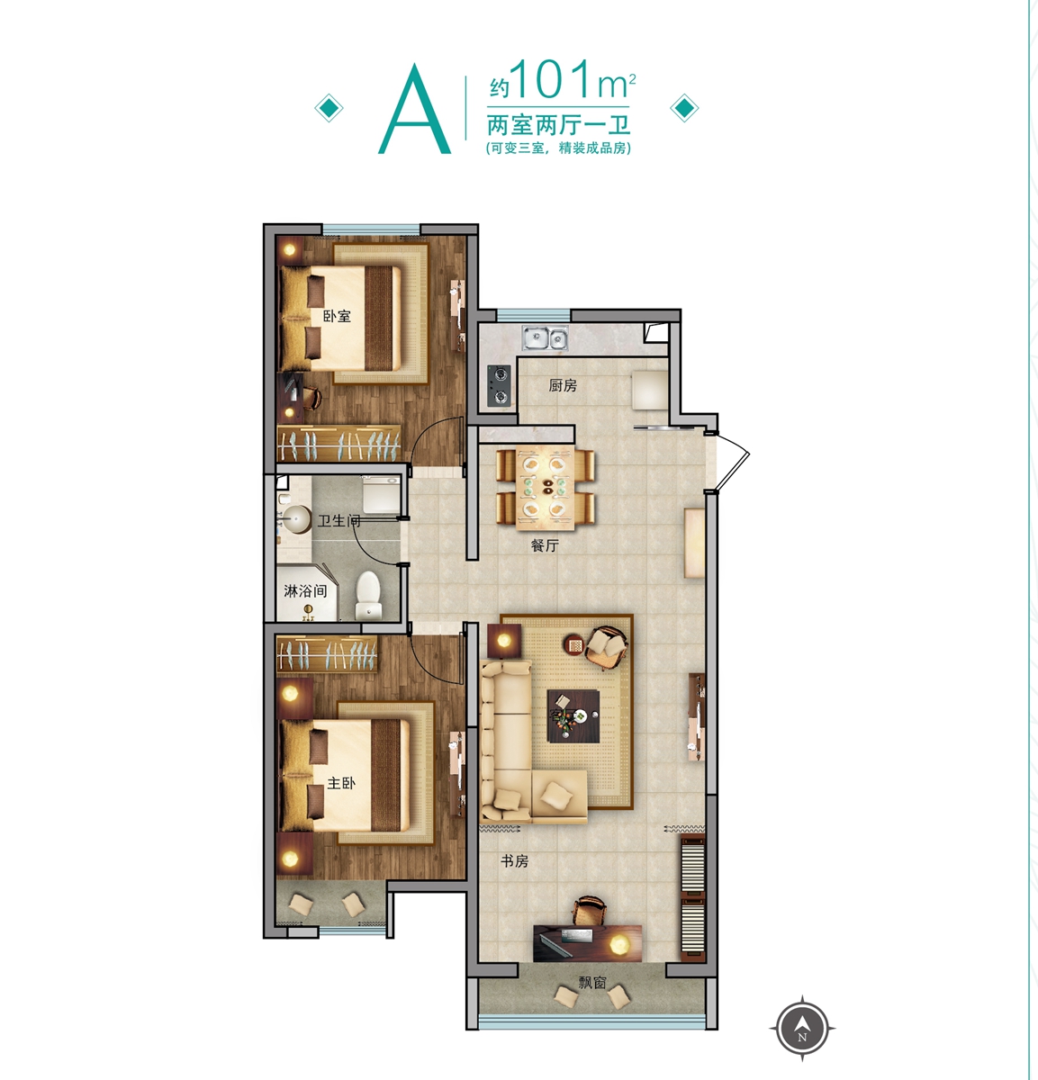 在售 南北通透 户型方正 全明格局 客厅朝南 主卧朝南 餐客分离 主卧带卫 飘窗