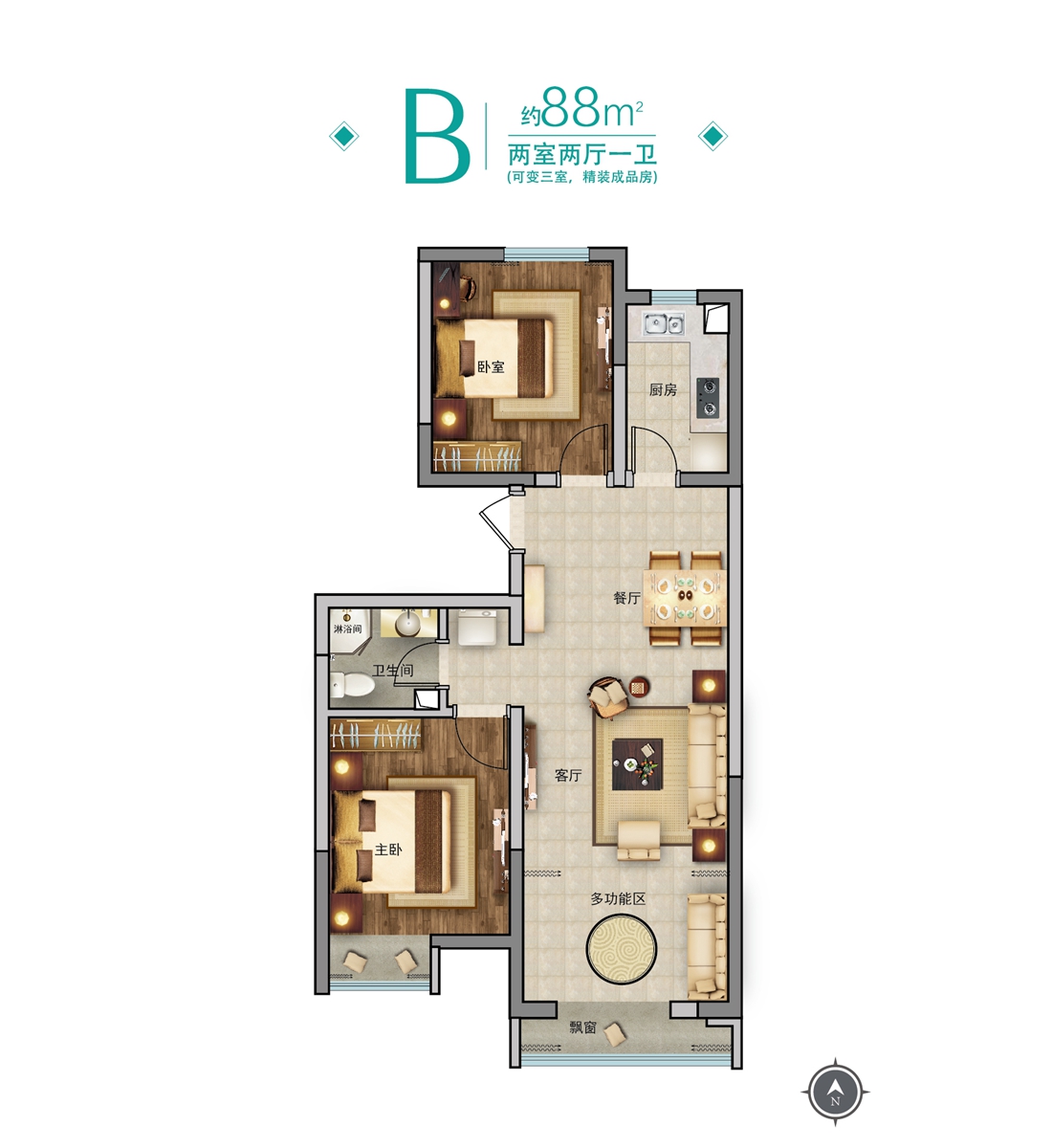 售罄 南北通透 户型方正 客厅朝南 主卧朝南 餐客分离 飘窗 厨卫不对门