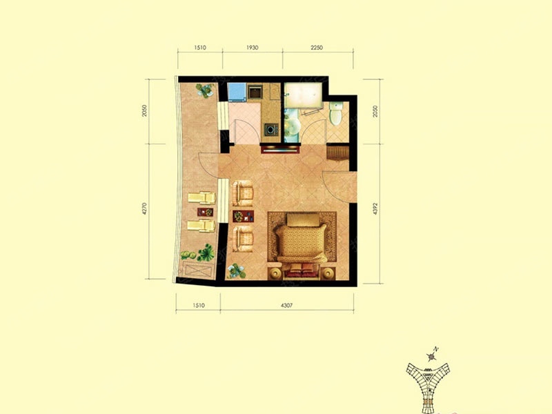 1室1厅1卫-E