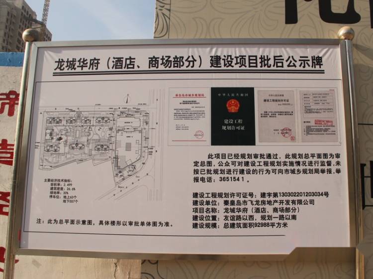 龙城华府项目南临城市主干道河北大街,东临友谊路,北临规划一路,西邻西港路。项目是由飞龙地产开发,江苏中阳建设,总占地67918.1平方米,总建筑面积169790平方米,共计840户,容积率仅有2.49。龙城华府项目是由7栋板式住宅、一栋酒店、一栋三层大型综合购物商场、一栋幼儿园组成。