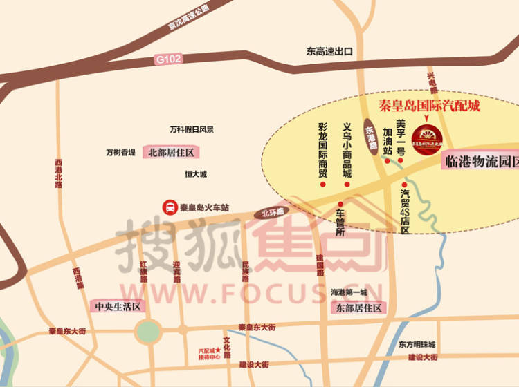 秦皇岛国际汽配城西邻东港路,南邻秦山公路,周边交通便利。