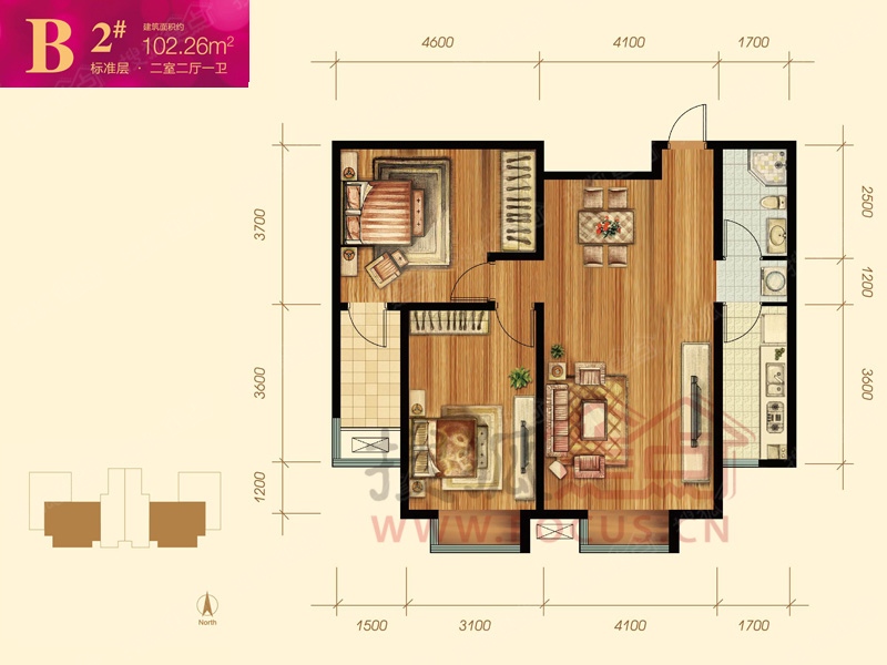 2室2厅1卫-2号楼B
