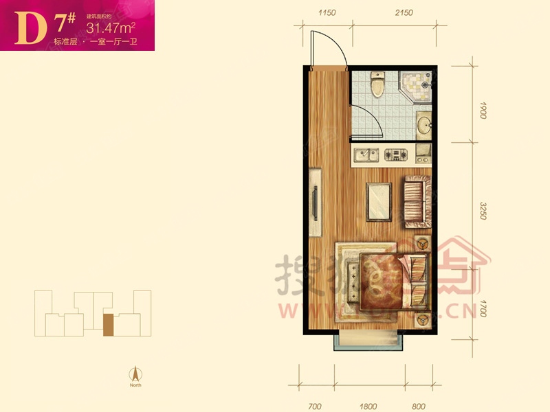 1室1厅1卫-7号楼D