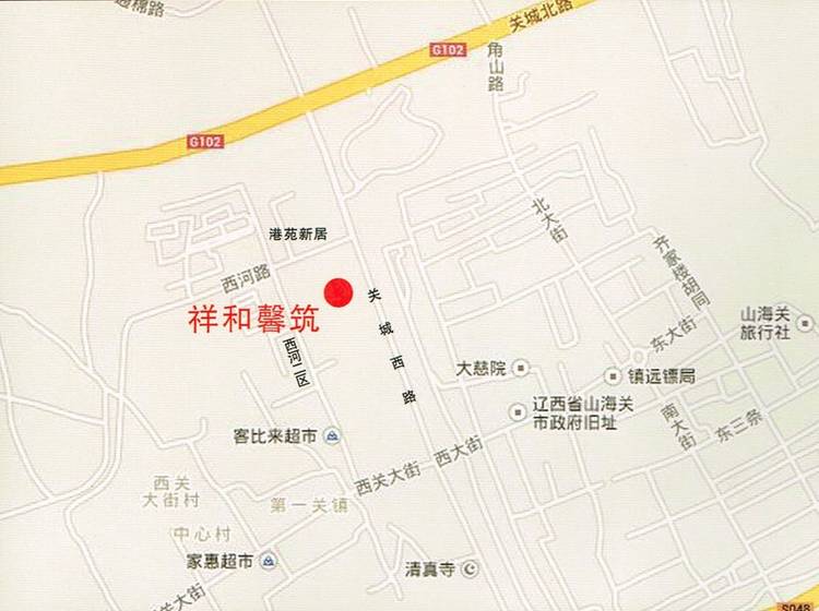 祥和馨筑项目位于山海关关城西路与西河路交汇处,祥和馨筑项目距山海关古城约100米,紧邻关城西路,地块周边有“西河二区”、“港苑新居”等居民住宅区。祥和馨筑为低密度、大绿化社区,户型南北通透,大开间,短进深,小公摊(公摊面积为11.7%~12.9%);另有4栋二层联排别墅(公摊面积为8.28%),设计理念以“院落生活”为主题。