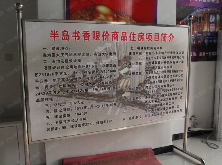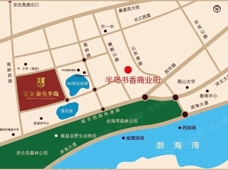 秦皇岛西部快速路与横断山路交叉口北行100米(东北石油学院北侧)半岛书香商业街接待中心。