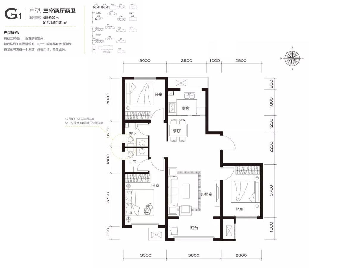 售罄 南北通透 主卧朝南 餐客分离 卧室带阳台