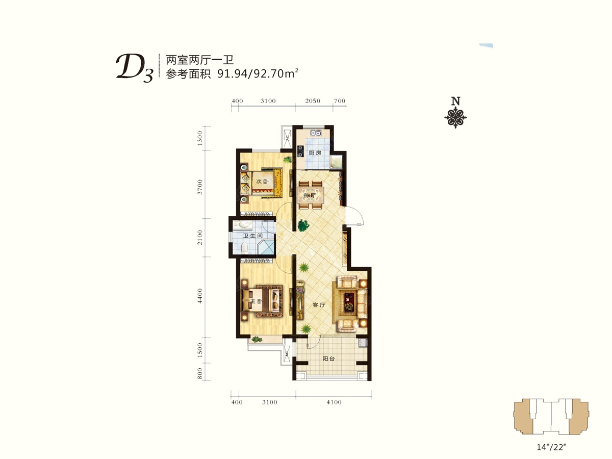 2室2厅1卫-D3
